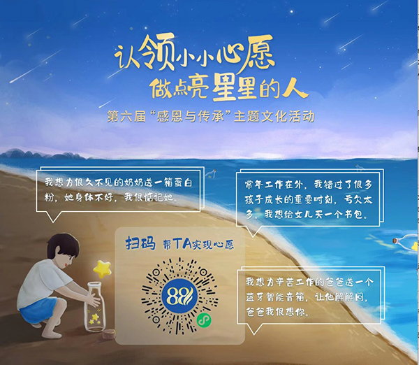 8月8日當天,“心愿漂流瓶”通過小程序正式公布,很快獲得了大家的積極響應(yīng):集團多位高管帶頭支持,機關(guān)員工、項目經(jīng)理以及下屬單位也紛紛行動,通過個人或集體的名義獻上愛心。